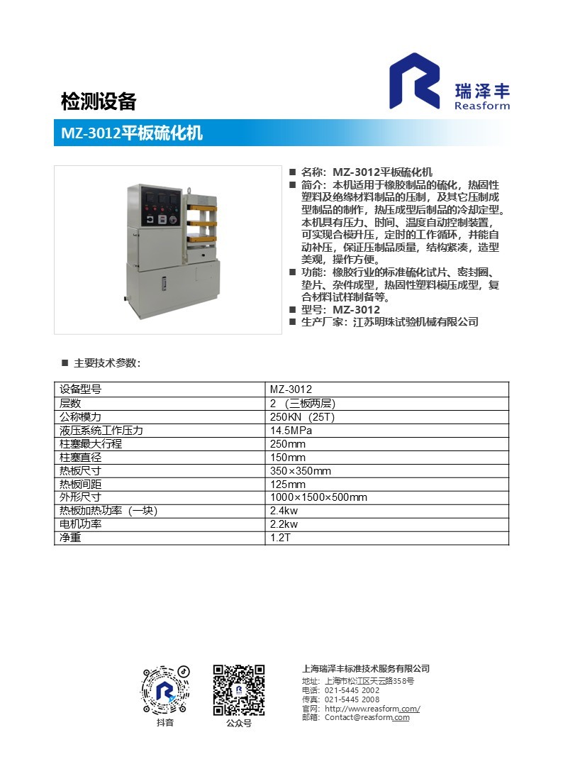 功能:橡胶行业的标准硫化试片、密封圈、垫片、杂件成型,热固性塑料模压成型,复合材料试样制备等。
